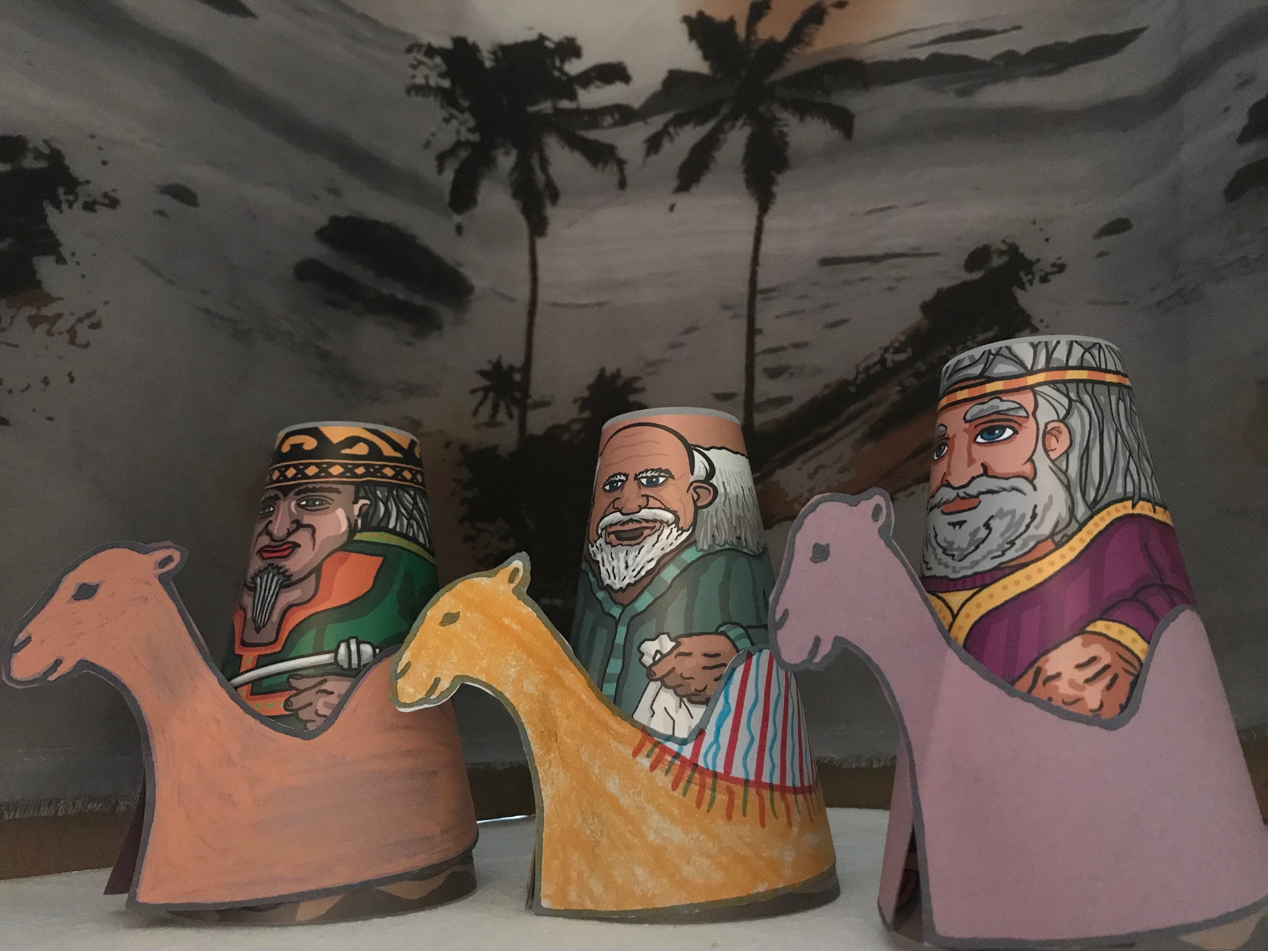 The wise men travelling from the East towards Bethlehem, following the star